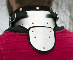 These gorgets are made of 18 gauge 304 stainless steel with 4-5oz suede leather lining, solid shank hammer-peined copper rivets and high quality latigo straps. Special attention is paid to properly rounding the edges of the steel plates, gorgets shouldn't be sharp!