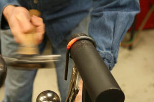 The buckle is made in-house and is a hand-forged and welded steel ring with steel tongue. The buckle is attached to the belt via copper belt rivets that are solid shanked and hammer-peined.