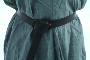 When you place your order, please specify your waist measurement and 5 holes will be punched in the belt with the center hole being at the waist measurement you provide and a sufficient "tail" left to allow the belt to hang to the knee.